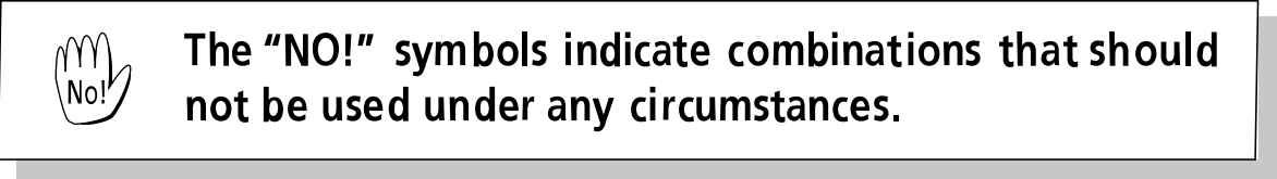 Be very careful when combining a brake and brake lever. Incorrect combinations can cause accidents or insufficient braking forces due to improper cable strokes. Be sure to carefully consult the chart below and select the brake and the matching brake lever.
